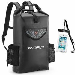 Product Features Piscifun Wrapper waterproof dry backpack is made from heavy duty 500D PVC to seal out the elements with watertight, welded seams and a roll-down top. Keeps your
