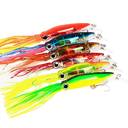 - 6 Different Octopus Bait Fishing Lures Color: Length: about 140mm/5.5in (beard not included ); Weight: about 40g/1.4ounce; Hook size: 1/0# Application: casting or trolling