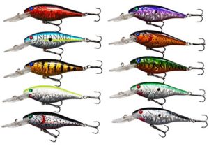 Package: 10pcs Product Features 1.Durable ABS hard plastic body, exquisite coating, and sharp metal hooks set the hard baits high quality. 2.There are steel balls inside which can flow