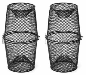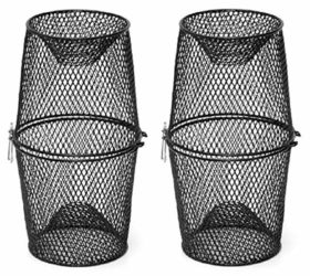 Constructed with 1/4″ black vinyl coated wire for durability. and years of use. There are 1″ entrance openings at both. ends. The two halves stack together for space saving