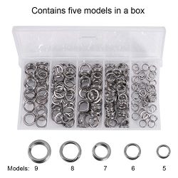 Greatfishing Stainless Steel Split Ring With Fishing Pliers. Value combo packing, five sizes available 5mm, 6mm, 7mm, 8mm and 9mm, 40pcs each size. In plastic box. Strength from 30lb