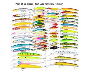 Fishcm Hard Fishing Lures 60pcs Topwater Lures & Crankbaits Gear for Freshwater,Fishing Tackle Lure Kit Set
