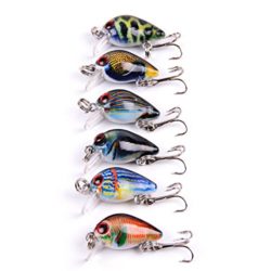 Aorace 6pcs/lot 1.5g/3cm Small Crankbait Top Water Fishing Wobbler Colorful Mini Crank Bait Bass Fishing Tackle Treble Hooks With multiple color painting in body, this bait simulates ocean fishes
