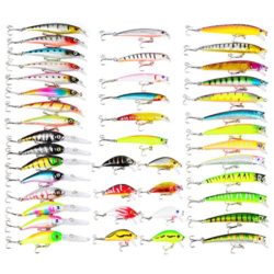 Features: They create life-like swimming actions in water. Smooth and rapid diving action bright colors to attract big fish. Pack of 43 pieces Mixed Color and Size Fishing Lures