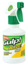Bring your bait to life with Berkley’s Gulp. Alive. Attractant Spray. Simply spray onto soft or hard baits, your line and even live baits to boost with a powerful