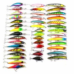 Juemenzhe 43 Pcs Bass Fishing Lures Hard Fishing Lure Set Colorful Minnow Popper Crank Rattlin VIB for Saltwater or Freshwater Running Depth 1-4 feet