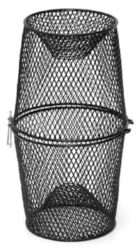 Constructed with 1/4″ black vinyl coated wire for durability. and years of use. There are 1″ entrance openings at both. ends. The two halves stack together for space saving