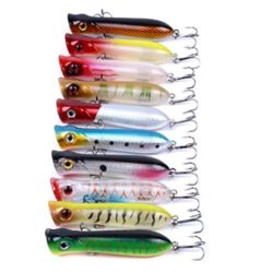 Aorace 10pcs/lot 8.5cm 11g Artificial Fishing Lures Kit 3D Eyes Hard Popper Lures For Saltwater Freshwater Each lure comes with two sharp treble hooks,Durable ABS hard plastic body, put