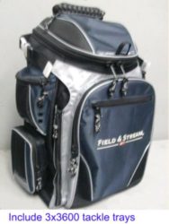 Field & Stream TEC-SPEC Angler TS-3-360 Backpack – Blue Features: Includes 3-360 size utility boxes Reinforced and padded straps Padded back panel Four side zippered pockets Soft rubber single