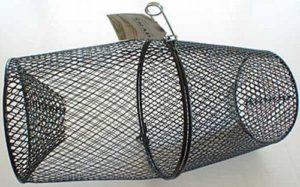Long lasting floating fish basket with both top and bottom spring loaded trap doors. Top door of tough styrene for extra strength. South Bend wire fish baskets are manufactured