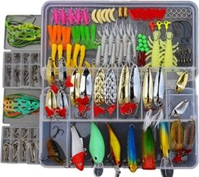 Fishinghappy 180PCS Fishing Lure Set Kit Lots Include Vivid Spinner Baits,Topwater Frog Lures,Crankbaits Lures,Spoon Lures Soft and Hard Lure Baits Tackle Set Bionic Bass Trout Salmon