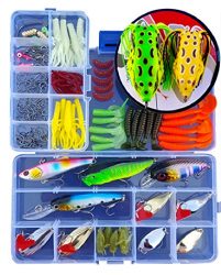 Bluenet 275pcs Fishing Lure Set Including Frog Lures Soft Fishing Lure Hard Metal Lure VIB Rattle Crank Popper Minnow Pencil Metal Jig Hook for Trout Bass SalmonA Full Set