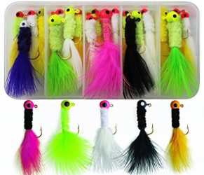 20pcs/box Crappie Jigs Assorted Colors Lead Head Hook With Marabou Chenille for Bass Pike Walleye Fishing Jig With Feather, Fishing Hard Lure Accessory Ice Fishing Jigs Size assorted: 1/32oz,