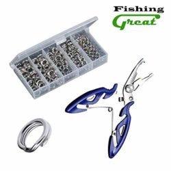 Greatfishing Stainless Steel Split Ring With Fishing Pliers. Value combo packing, five sizes available 5mm, 6mm, 7mm, 8mm and 9mm, 40pcs each size. In plastic box. Strength from 30lb