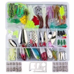 Product description: gift for fishing enthusiasts. Material: Plastic/Metal. Shape: Bionic Bait. Eye: 3D stereoscopic eyes, more realistic and vivid. Position: Lake,river,sea,pond,Creek. Ithuriel 239pcs Fishing Lure Set,Including Frog Lures,Spoon Lures,Soft