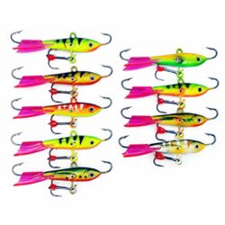 8 SHAPE OF WONDERFUL ICE FISHING JIGS FOR ANGLERS Weights & Quantity 1/28oz(1g)*10pcs 1/26oz(1.1g)*10pcs 1/22oz(1.3g)*5pcs 1/19oz(1.5g)*5pcs 1/13oz(2.2g)*5pcs 1/10oz(3g)*5pcs Total 40pcs fishing jigs in a plastic box. ICE FISHING- MAKES