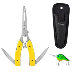 This Fishing pliers is necessary for fishermen to remove hooks and cut braid line. Material: polished Stainless Steel and ABS Plastic Top Layer Color : Yellow/Blue Weight : 0.3lb
