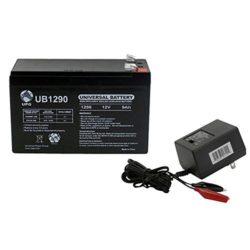 UB1290 12V 9AH – Absorbant Glass Mat (AGM) technology for superior performance. Valve regulated, spill proof construction allows safe operation in any position. UPG D1724 Sealed Lead Acid Battery charger (6V/12V switchable single-stage with alligator clips). Common uses