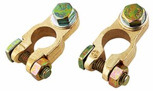 JMY 2 PCs Marine Brass Copper Battery Terminal Post Pile Head Clamps Clips Connector Positive Negative