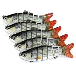 Features:6 segments fishing lure.Two strong and sharp trebles.3D lifelike eyes.high-resolution detail body.smooth and rapid diving action.lifelike swimming action provoking biting predator water.durable ABS material contribute to longevity.suitable fish for