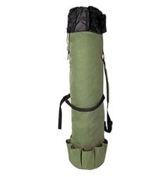 This fishing bag securely fastened with double straps at top of bag and features a quick fastener strap around the outside center that secures gear during transport 600D Oxford