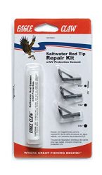 The Eagle Claw SWTAEC Saltwater Rod Tip Kit includes rod tips and UV-protection rod cement. Product Features Includes rod tips UV-resistant rod cement Silver finish