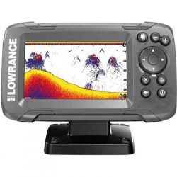 Lowrance HOOK2-5x Fishfinder/GPS with SplitShot Transducer 5″ Color LCD with 200 Watt, 200 KHz Sonar, 500 Watt DownScan, and Plotscreen (No Mapping) Easy to use, easy-to install and easy