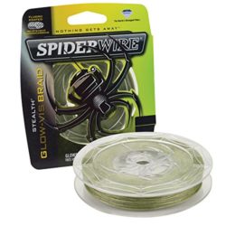 Spider Wire Stealth Glow-Vis Braid is made from Dyneema, The World’s Strongest Fiber. Each size is uniquely colored with special colorants that reflect ultra-violet rays above water for high
