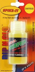 Spike-It Dip-N-Glo Plastic Worm dyes are specially designed for dipping plastics such as worms, grubs and even skirts to produce immediate permanent color changes. Scented varieties deeply penetrate the