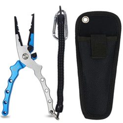 Fishing Pliers Features: – Lightweight aluminum material to reduce the weight, extremely light for long time fishing trip. – Long nose jaw for removing hooks and splitting rings.It is