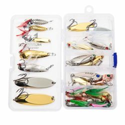 Specifications  Style: Hard bait  Quantity:  30PCS Fishing Lures-including 18PCS Spinnerbaits and 12PCS Spoon Lures  Assorted fishing lures length: about 2.75 to 4.33 inches (7cm to 11cm) (with hook)  Treble Hook Size: Size 6 (27pcs); Size 4 (3pcs)  Features  Strong and sharp, vivid and beautful painted  Not easy to be broken, can withstand heavy fish  Anti-corrosion, durable and practical characters  Easy to fish by barb hook  Package included  Pack of 30 pieces Mixed Color and Size Fishing Lures Kits  Notice  When using this lure, please be sure to check the the safety of your surroundings  Please out of reach of children  The hooks are extremely sharp. Please handle with care  Product Features 30PCS Fishing Lures – includes 18PCS Spinnerbaits and 12PCS Spoon