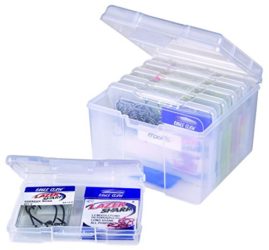 Adjustable Bin Storage Compartment Boxes Translucent lid allows quick view of contentsFlambeau Durable polypropylene constructionSee-through boxes feature a detachable lid and movable dividers for easy reconfiguration. Resist most common