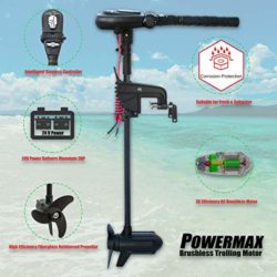 Specifications Thrust: 65 Lbs Shaft Length: 35″ Net Weight: 14 Lbs Voltage: 12V DC Max Amp: 50A Max Power Consumption: 600W Power Cord Length: 5.5ft Battery Cable Standard: 10