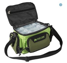 This green Fishing Tackle Storage Bag is a compact 11″L x 7″W x 6.25″H in size. It is made of durable polyester fabric with PVC coating. This fishing tackle