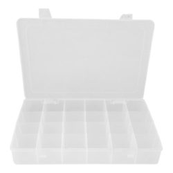 Clear white plastic fishing box, features rectangle shape, 24 compartments, detachable baffles.Great for containing fish lure baits, fishing hooks, lead weight and other small fishing tackles.Detachable baffles make it