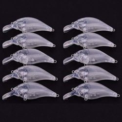 Material: ABS Plastic Length: 3 inches(7.5cm) Weight: 1/3 oz/pc Color: as seen in the picture Item including: 30pcs blank fishing lures Transparent white fishing lure, realistic shape, suitable for