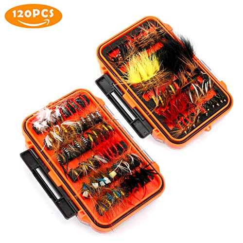 - Package includes: 120pcs fly fishing lures and one waterproof tackle box.