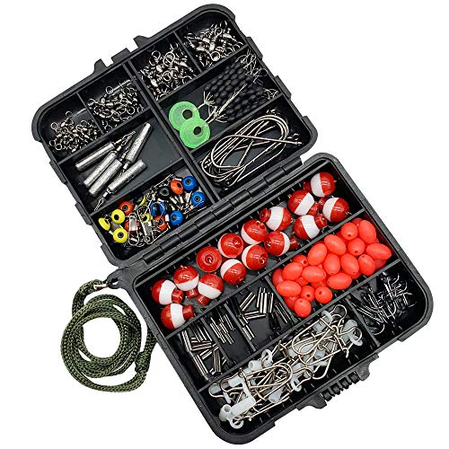 Redgirl 173Pcs Fishing Terminal Tackle Box – Fishing Baitholder Hooks, Drop Shot Weights, Fishing Bobbers, Fishing Stoppers, Sinker Slides, Double Barrel Crimps, Three Way swivels, Fishing Beads