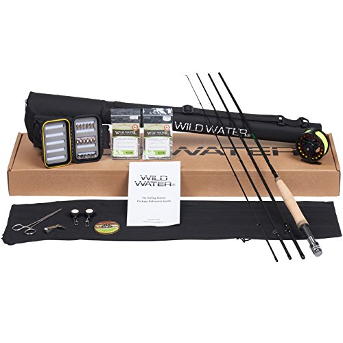 - COMPLETE FLYFISHING COMBO KIT: 5/6 Weight Starter Package includes everything you need to start fly fishing. It comes with a 9-foot, 5/6 weight, 4 piece fly rod, a large arbor reel, preinstalled line, backing and leader, a rod sock, a lightweight rod case with a zippered storage pouch, a fly box, flies, and a detailed instruction book. The starter kit also includes a spare leader, zinger and nipper/knot tying tool.